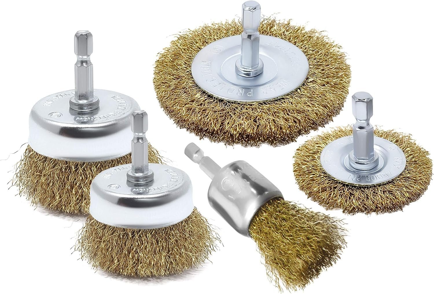 Cup brushes are great for wide flat surfaces, while wheels are better suited for corners or edges or for working in straight lines, while the end brush is ideal for head to reach areas and specific spots.