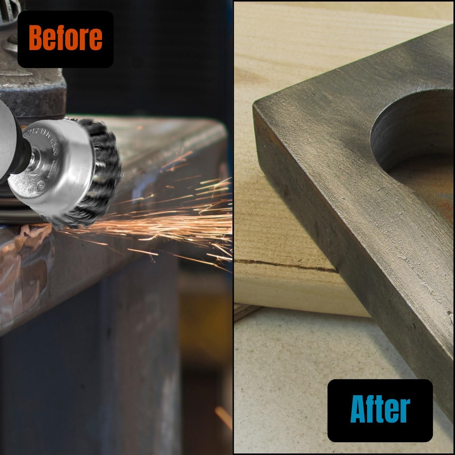 Ideal for Flat and Curved Metal Surfaces: The cup-shaped design allows even coverage on wide, flat areas and curves, making it perfect for preparing metal for painting, finishing welds, and removing corrosion.