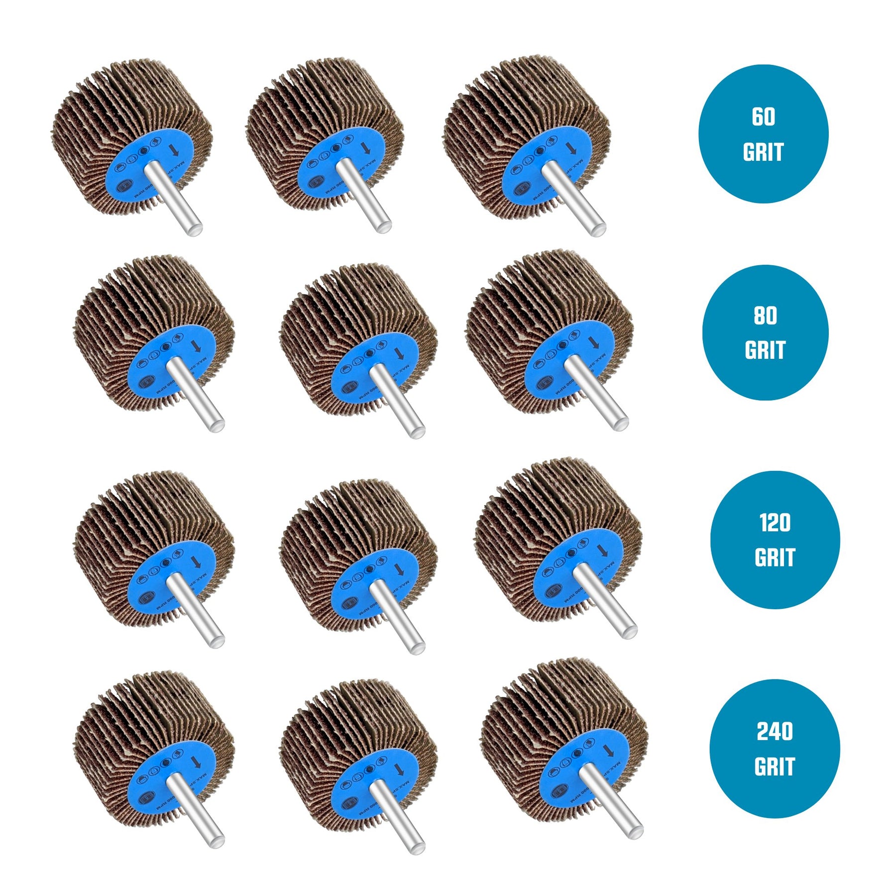 12pc Flap Sanding Wheels Kit for Drill, Mounted on 1/4-inch Shank