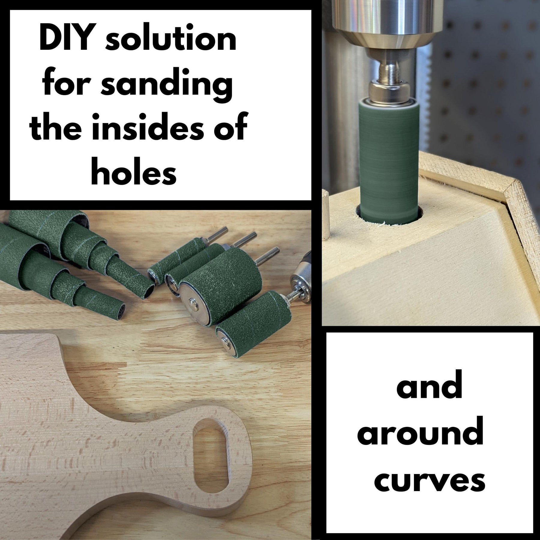 12x Sanding sleeves: Three Sanding sleeves included for each diameter, one fine sleeve[120 grit], one med [80 Grit] and one coarse [60 Grit]