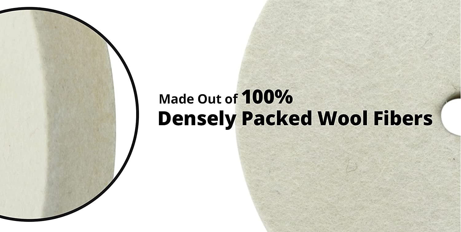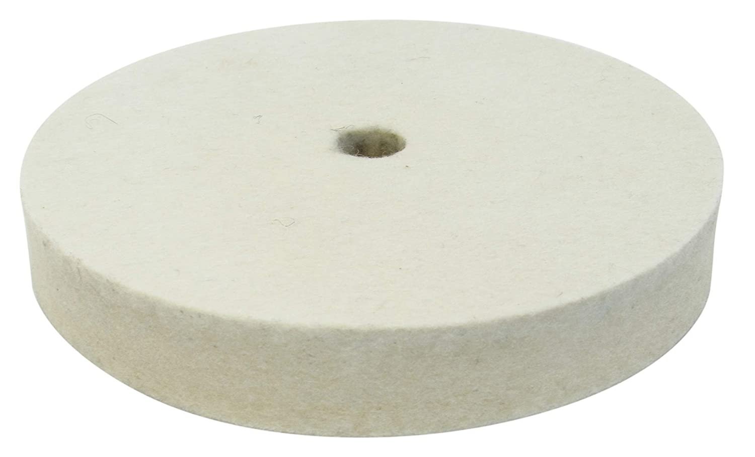 The buffing wheel is firm and thick, made of 100% wool fibers packed very densely in a form of a buffing wheel with a thick edge (1-inch thick) to provide an ideal buffing/polishing surface for sharpened knives and blades