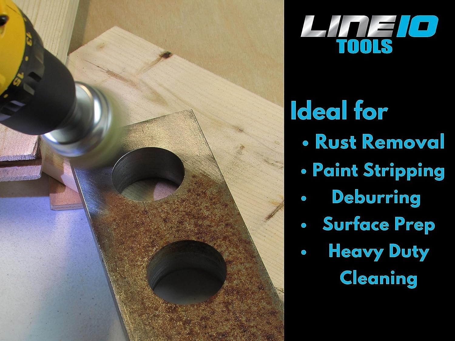 • Idéal pour l'élimination de la rouille, le décapage de la peinture, l'enlèvement de matériaux, l'ébavurage des bords aiguisés, le mélange des soudures.