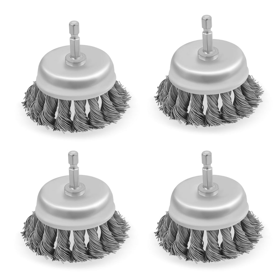 4pk 3" Knotted Wire Cup Brush for Drill, 1/4" Hex Shank