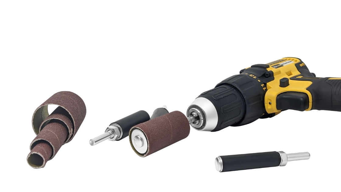 This kit allows you to utilize the tools you already have and use all the time. the rubber drum is mounted on a universal 1/4-inch shank which gives you flexibility in your work. If you are looking for a portable solution for sanding tricky and hard to get areas in your workpiece you can attach the sanding drum and sleeve on any drill or die grinder. If you are looking for a stationary solution that will save you time and act as a spindle sander in a pinch (and a much smaller budget) you can mount it on your drill press.